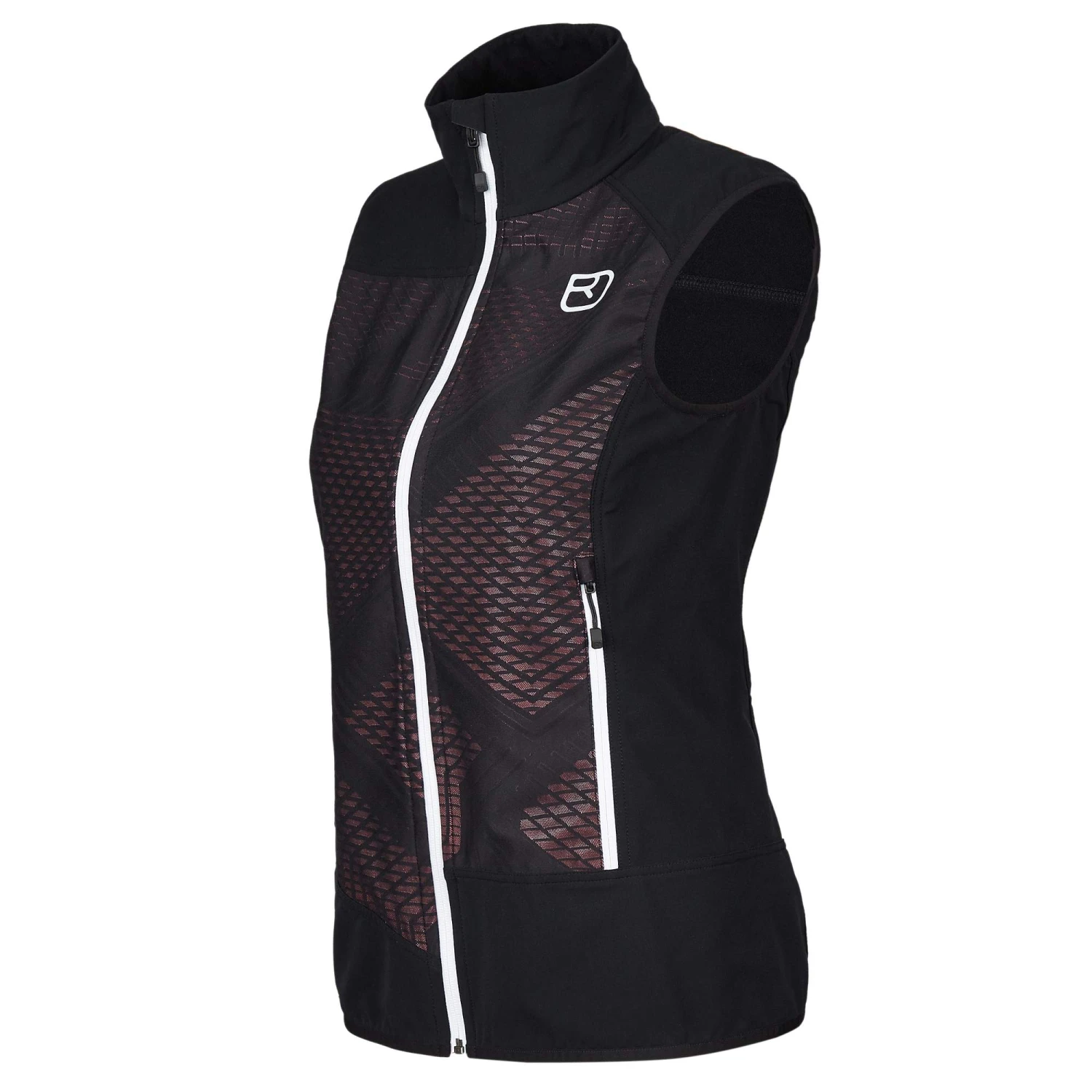 Das Außenmaterial besteht aus abriebfestem, wasserabweisendem Polyamid. Um den Spagat zwischen hoher Atmungsaktivität und gleichzeitigem Schutz vor Wind zu ermöglichen, ist die Weste zonenspezifisch designt: Die Front ist winddicht, der Rest stark windabweisend, dafür aber hoch atmungsaktiv.